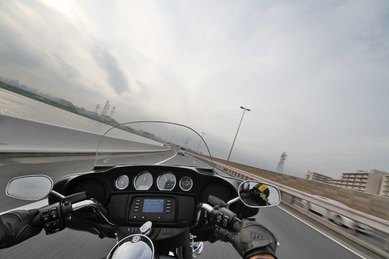 大雨のなか、ファットボブで高速道路を走るというシチュエーションに見舞われたのですが、ボディそのものはもちろん重量感あるホイールの恩恵か、不安定なコンディションのなかでも不安なく高速走行を楽しませてくれたのが特に印象的でした。
