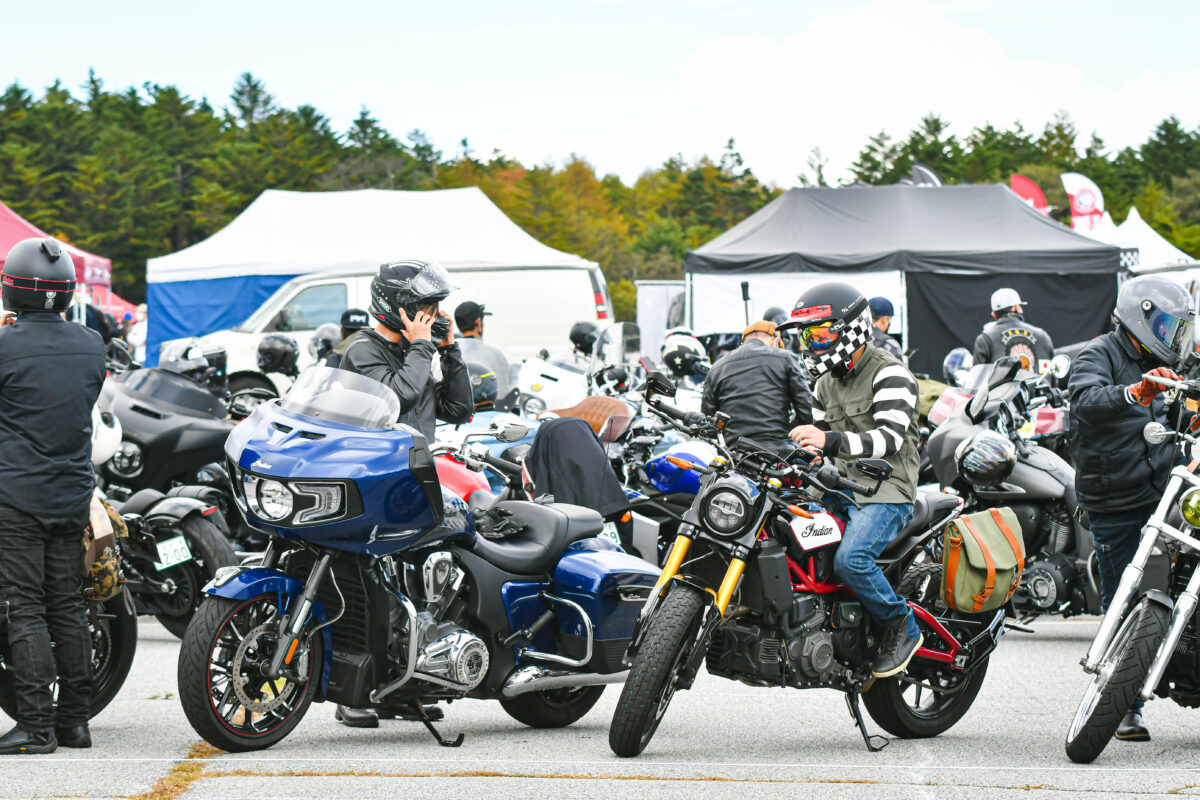 爽やかな秋晴れに恵まれた当日、会場周辺はダイナミックなワインディングや紅葉も楽しめる絶好のツーリングルートとあって、各地から多くのインディアン・オーナーが会場へ集まってきた。