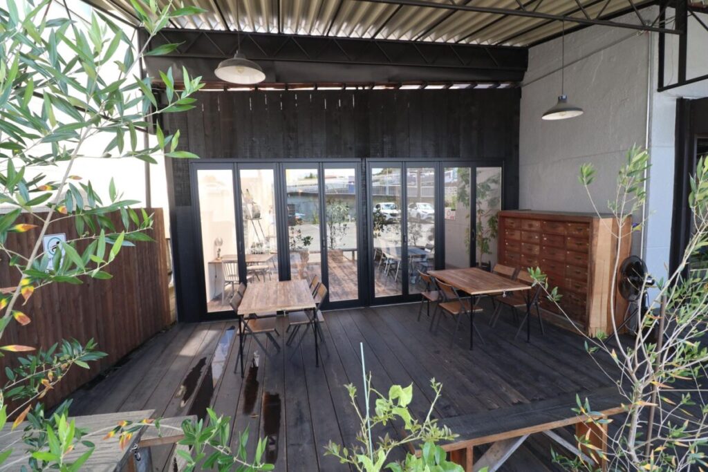 そのすぐ外はテラス席。普段は一般開放されていて、ペットとともに食事を楽しむことができます。BBQスペースとしても今後活用していくそうです。