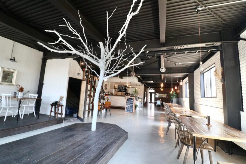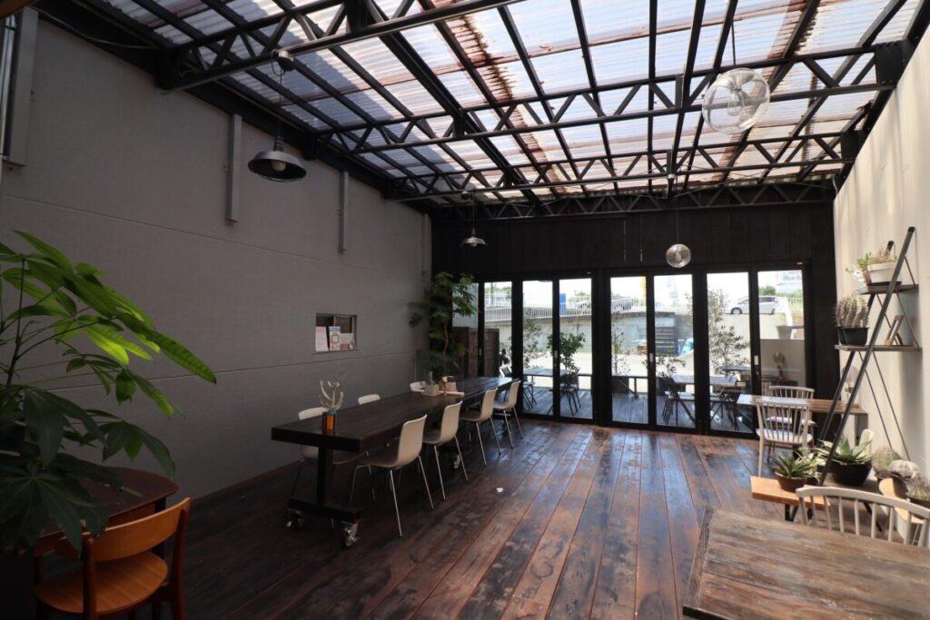 と野呂さん。以前からカフェをやりたいという想いをお持ちだったそうで、かつて埼玉・川口にお店を構えておられましたが、コロナ禍の2021年に移転を検討。その際、「カフェも併設できる大きな物件にしよう。できれば大通り沿いにある物件を」と考えられたのです。いろんな物件を検討したなかで、「思い描いていたアメリカ東海岸のNYブルックリン風の倉庫カフェというイメージにぴったりだった」という 築47年という埼玉・越谷のこの建物を選ばれました。