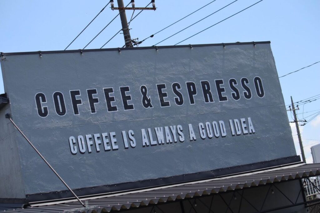 築47年の老朽化した建物をリノベーションして生み出されたこのカフェは、アメリカ・東海岸に多く存在するニューヨーク・ブルックリンの倉庫風カフェスタイルをコンセプトとしていて、その外観もグレーを基調とする無骨な1950年代アメリカをほうふつさせるデザインになっています。国道4号線沿いなので、東京からこちらに向かう人は元荒川を越えたところでこのインパクトある看板が目に飛び込んでくるので、見落とすことはまずないでしょう。