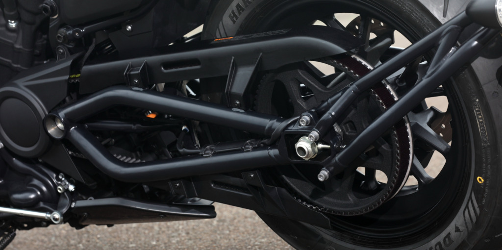 縦置きVツインエンジンを心臓とするハーレーの場合、2本のマフラーは右側に流れるように設置されます。そこにベルトドライブが同じ右側にあると、特にリアタイヤの右側にスプロケットとマフラーが重なるように配置されるのです。実際の走行時に妙な影響が出ることはありませんが、ナローにカスタムしたいオーナーとしては、他モデルと同様にベルトドライブは車体左側に来てほしいところ。「なぜスポーツスターだけ」という謎は70年の歴史のなかで解消されませんでしたが、スポーツスターSになってようやく収まりの良い設計になってくれました。