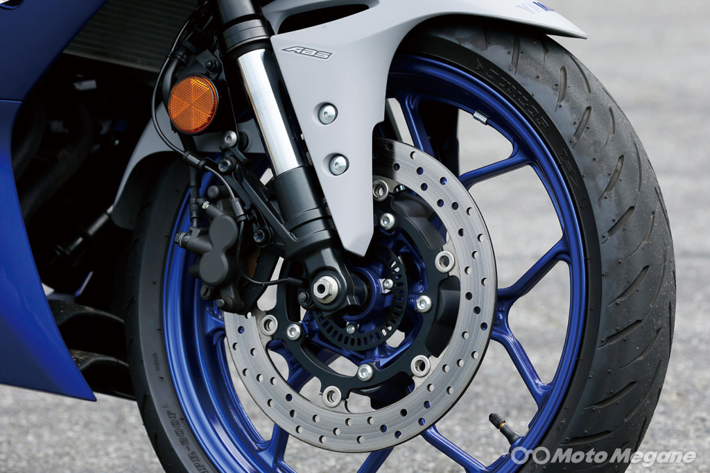 YZF-R3は、高い走行性能とスタイリング、さらに日常での扱いやすさも兼ね備えた250㏄スーパースポーツのYZF-R25の排気量を320㏄に拡大してパワーアップを図ったモデル。その走りは、吹き上がりの小気味よさと、遅れることなくレスポンスする程良い瞬発力。そして絶対的なトルクの強さがとても扱いやすく、かつ爽快な乗り味を提供してくれる。