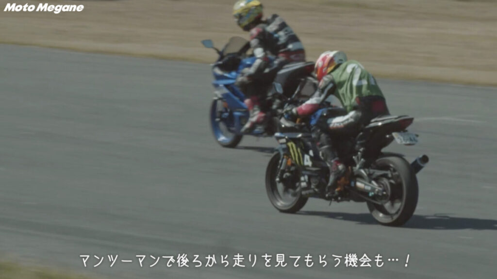 そうしてペースの上がってきた午後の走行は一段と速度域も上がり、コースからは排気音やエンジン音だけでなく、ニースライダーが擦れる音もそこかしこに聞こえてくる。こうして同じクラスのバイクによる、より質の良い走りを身近で見ることができるからこそ、レベルの高い走行にもどんどん挑戦していくことができるというのもサーキットチャレンジならではなのかもしれない。