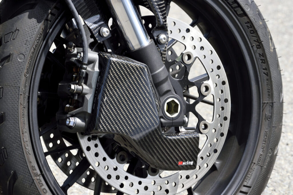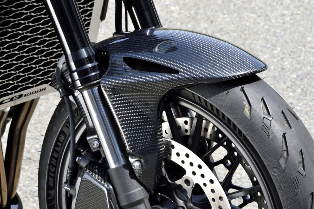 株式会社マジカルレーシングは、CB1000R用フロントフェンダー、キャリパークーリングダクトを発売した。フロントフェンダーは、フォークガード一体式にすることで、飛び石などからフロントフォークのインナーチューブを保護するアイテムだ。キャリパークーリングダクトは、走行風でブレーキキャリパーを冷却し、ブレーキ性能を安定させてくれるアイテムである。いずれもFRP、平織りカーボン、綾織りカーボンの3種から選択できる。