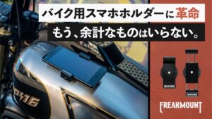 FreakMountはハーレーダビッドソン等の振動が大きく、また高速で走行するバイクに、外観を損なわずにスマートフォンを取り付ける為のソリューションを提供するために2019年にアメリカで設立されました。
