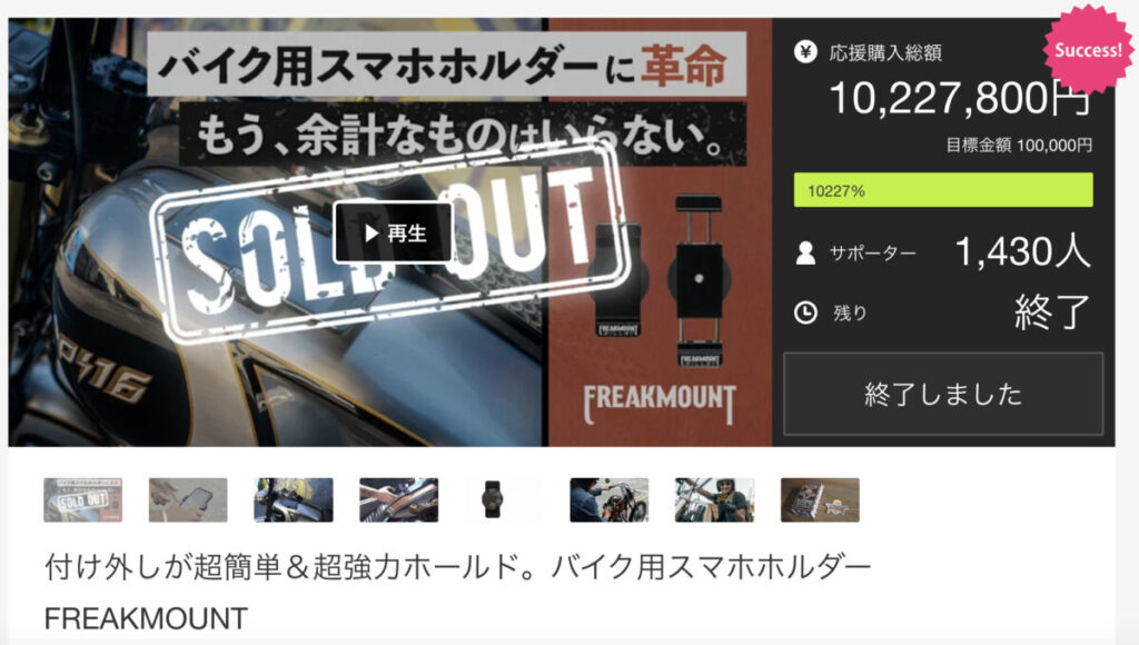 日本においては2023年1月末より実施したクラウドファンディングサイトMakuake(マクアケ)での先行発売キャンペーンで用意した1,500個(2個セット含む)がプロジェクト終了日を待たずSOLD OUTとなり、その後4月からの一般販売では感度の高いバイク系セレクトショップ等を中心に取り扱いを広げバイクのジャンルを問わず人気を博しております。