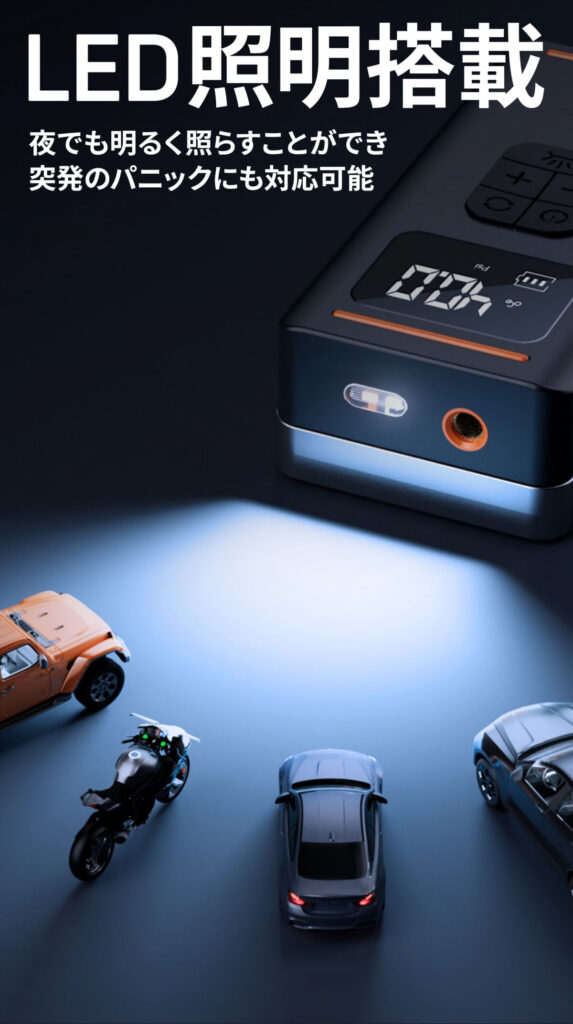 さらに自動電源オフ機能を搭載しているため適切な空気圧に達したら自動的に止まります。