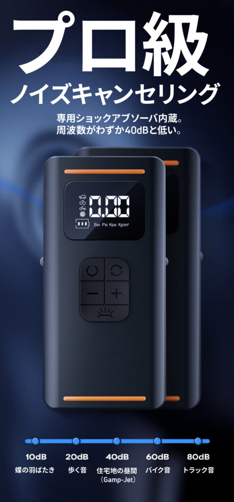 Gamp-Jetは機能的な電動空気入れで、軽量でコンパクトながら便利な機能を備えています。