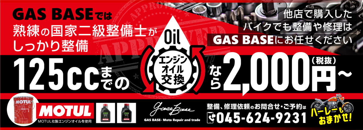コロナ禍以降、バイク人気により車両購入後のアフターサービス先が無いことや、すぐにサービスを受けてもらえていないなど、困っている状況が散見されています。GAS BASEでは、様々な修理や整備のご依頼を承ります。ご予算に応じた修理や整備内容をご提案いたします。また、セカンドオピニオンとしてもご利用ください。