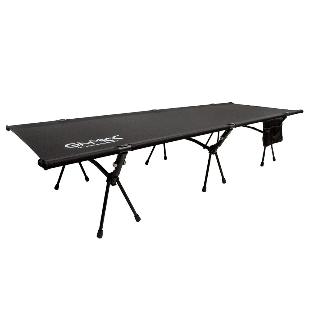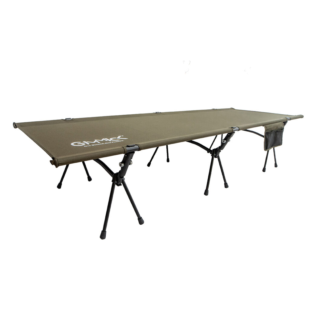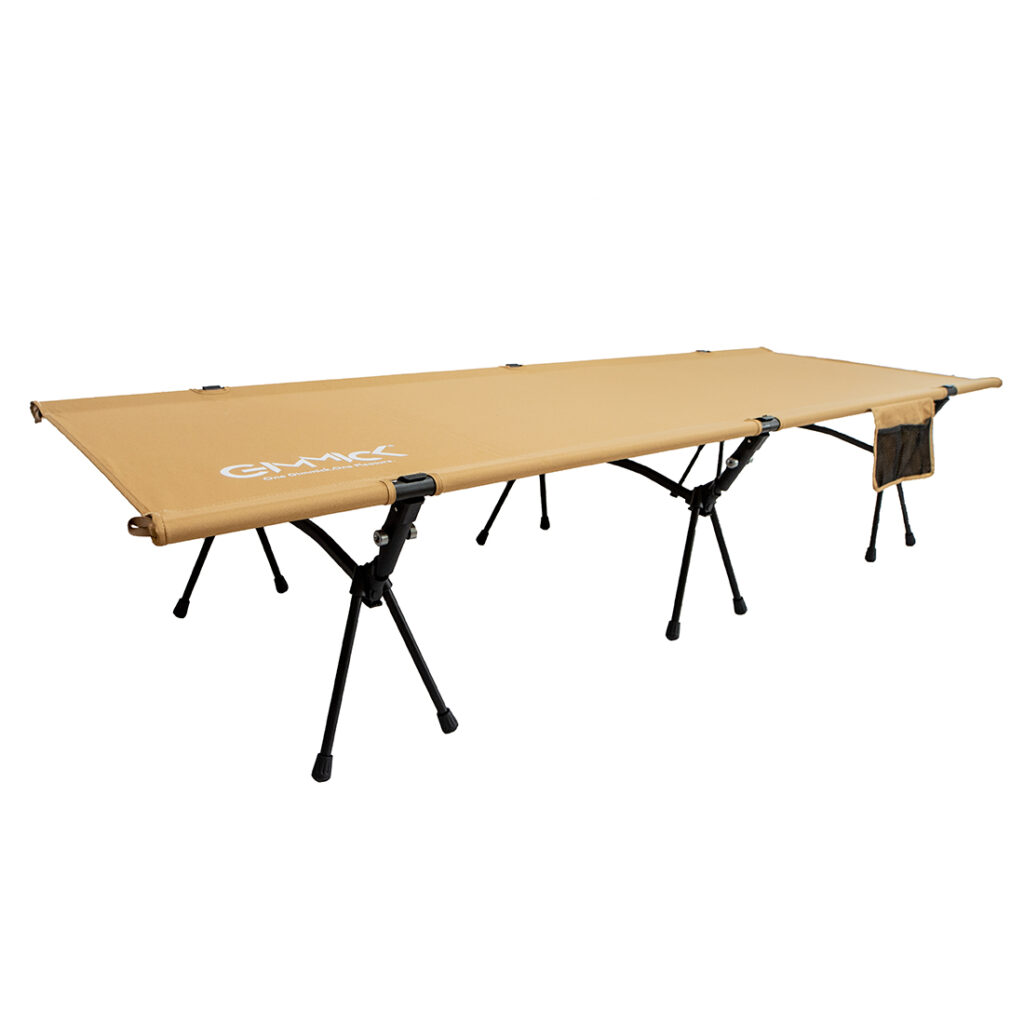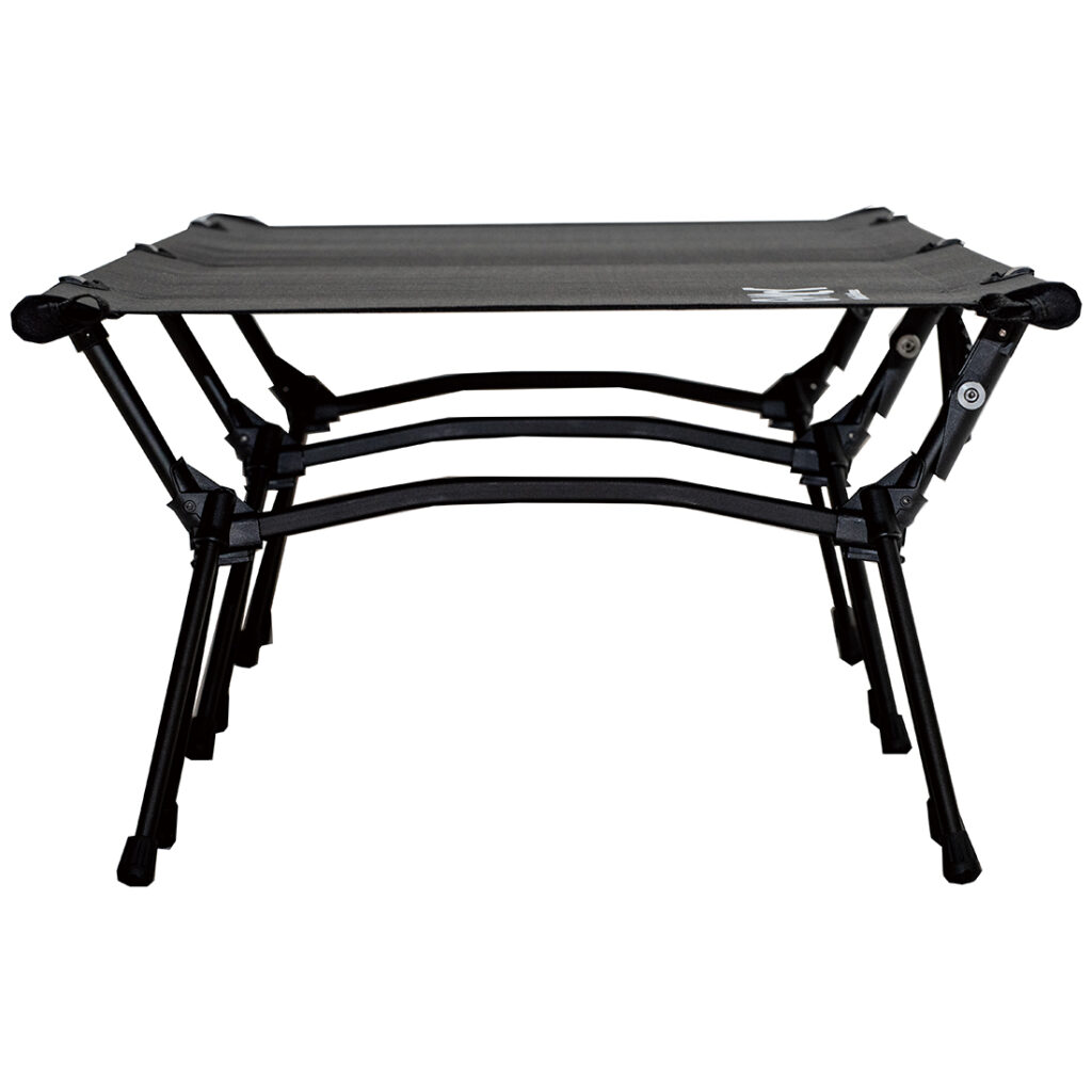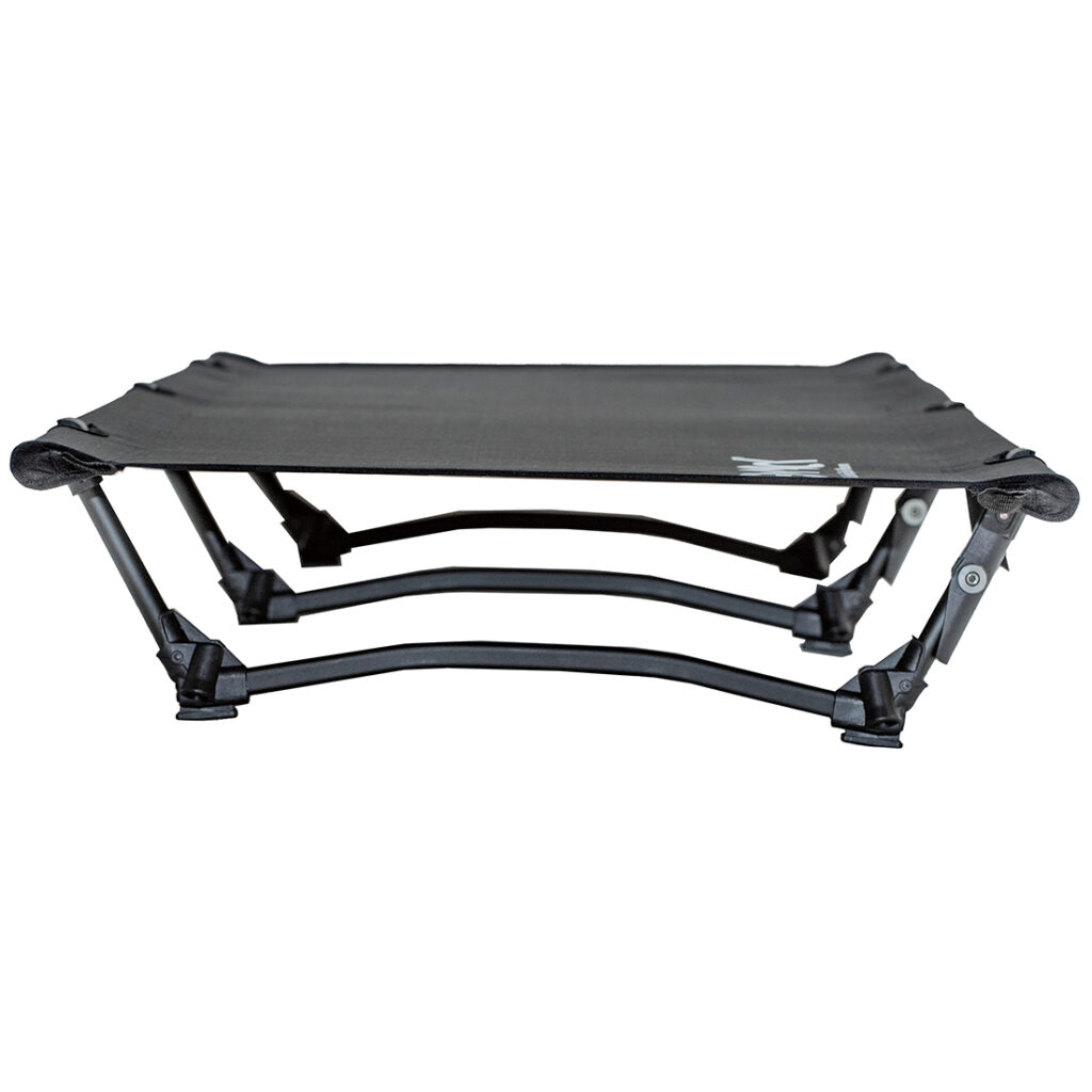耐荷重150㎏を誇るコットは、ムラなく均一なテンションを保つ上質なシート部分と簡単に組み立てられるアルミフレームから生み出され、収納時も軽量コンパクト。まさにキャンプツーリングライダーにオススメしたい逸品。テンションがかかるフレーム部分はテコの原理で簡単に固定できるので女性でも楽々セット可能。取り外し式脚部により高さを38cm⇔17.5cmの2段階で選べるためベンチとして使用したりテント内でコットとして使い分けることもできます。キャンプの時のみならず普段からでも様々なシーンで活躍するコットです。