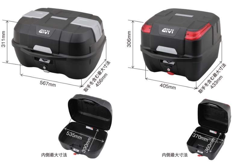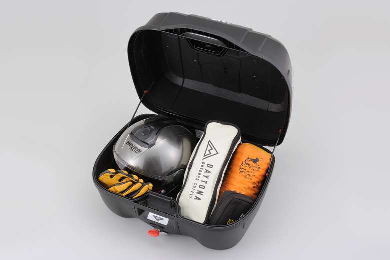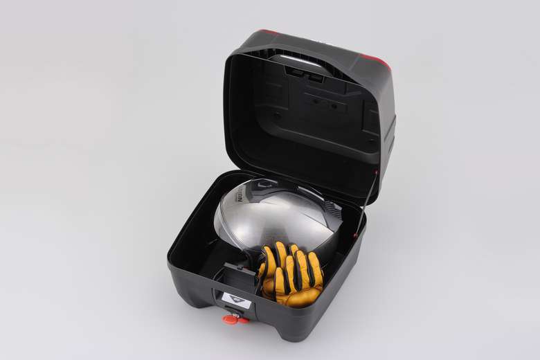 B33NMは、フルフェイスヘルメット1個もしくはA4サイズのバッグなどが入るサイズ感で、B45NMはフルフェイスヘルメットが2個入るゆったりサイズとなっている。どちらもプッシュダウンクローズシステムが搭載されており、荷物を抱えていても蓋を押さえるだけで簡単にロックが解錠可能だ。