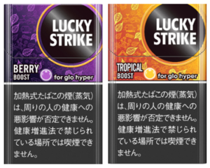 ▶「ラッキー・ストライク・ベリー・ブースト・glo hyper 用」、「ラッキー・ストライク・トロピカル・ブースト・glo hyper 用」
