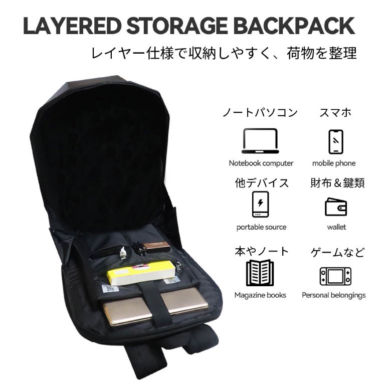 スマホアプリでLEDを自在にカスタマイズ/アニメーションやテキストを表示/大容量/盗難防止ポケット付/夜道の安全に