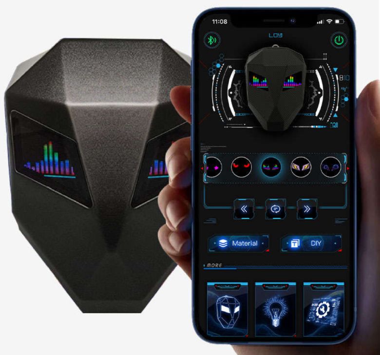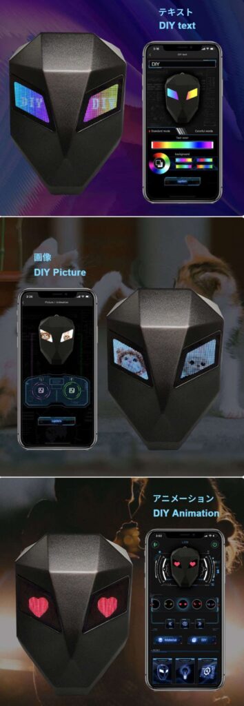 - ふたつの目に色やテキスト、画像などをアプリ設定できるLED照明