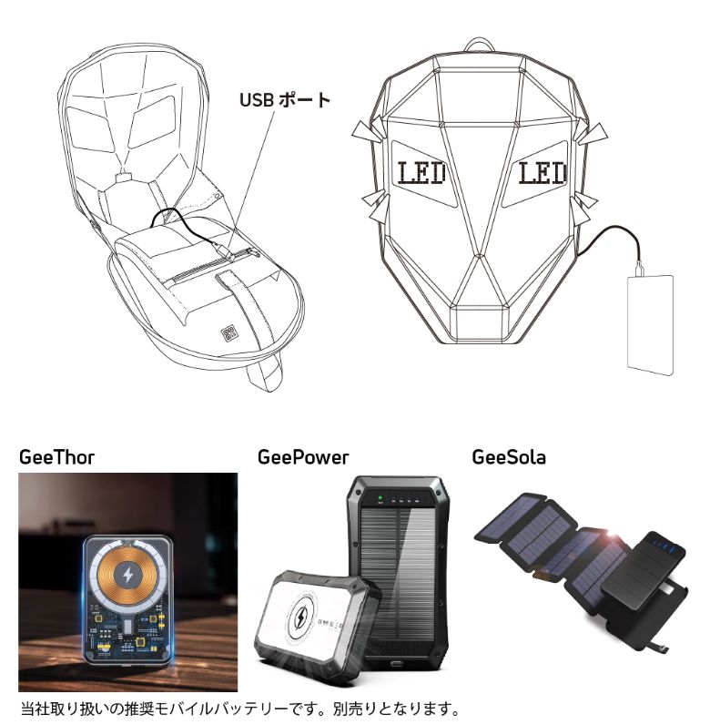 GeeKnight(ジーナイト)は、LED照明を搭載したユニークなバックパックである。