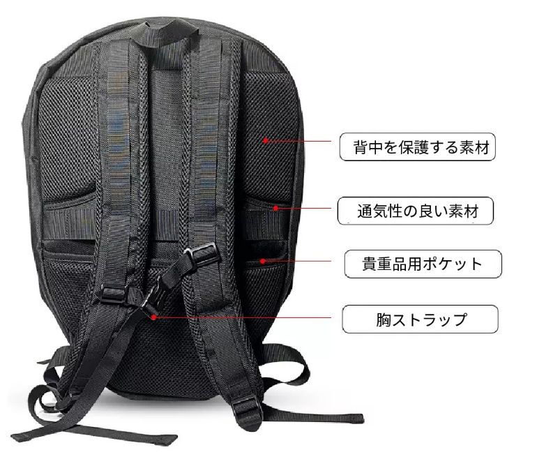 - 使い勝手と収納力に優れたバックパック、実用性の高いデザイン。背面に盗難防止用のポケット