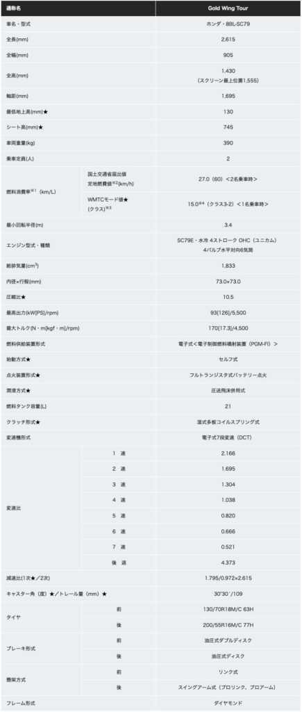 Gold Wingは、1975年に米国でGOLDWING GL1000として発売されて以来、40年以上にわたりHondaのフラッグシップモデルとして進化してきました。2018年1月には、モーターサイクルがもつ魅力の原点に立ち返り“走りの高揚感” “操る楽しさ”を提供するため、路面追従性の高いHonda独自の二輪車用ダブルウィッシュボーンフロントサスペンションを採用し、軽量コンパクトな新設計エンジンを剛性の高い車体に搭載するとともに、利便性の高い数々の先進装備を採用するなど、パッセンジャーとともに最上の感動を共有できる仕様に全面刷新。お客様から支持をいただいております。