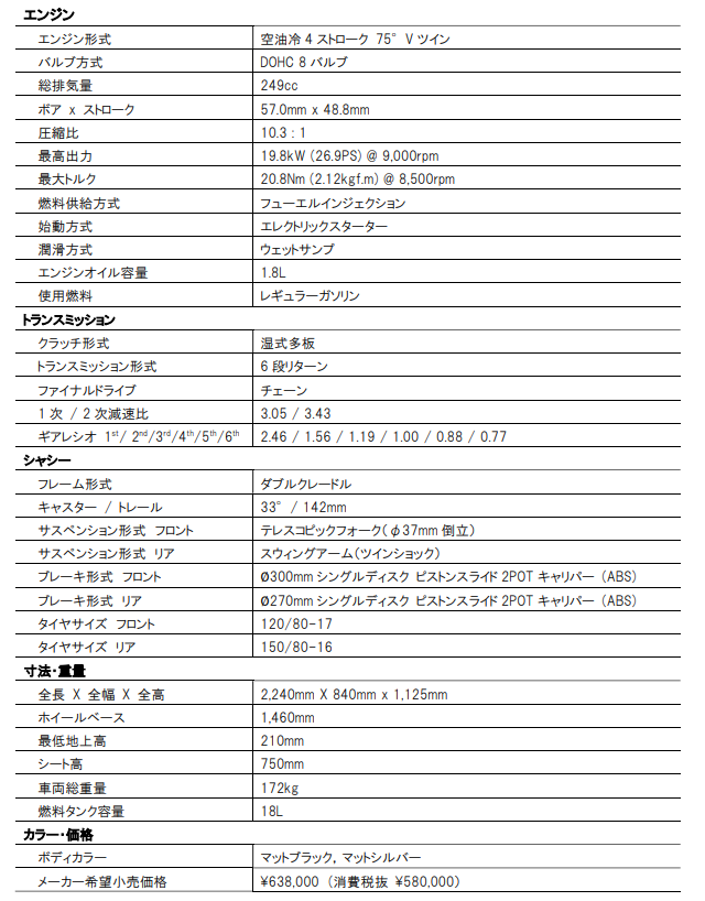 GV250DRA は、GV125S/300S BOBBER に続くクルーザーGV シリーズのニューモデルとなります。