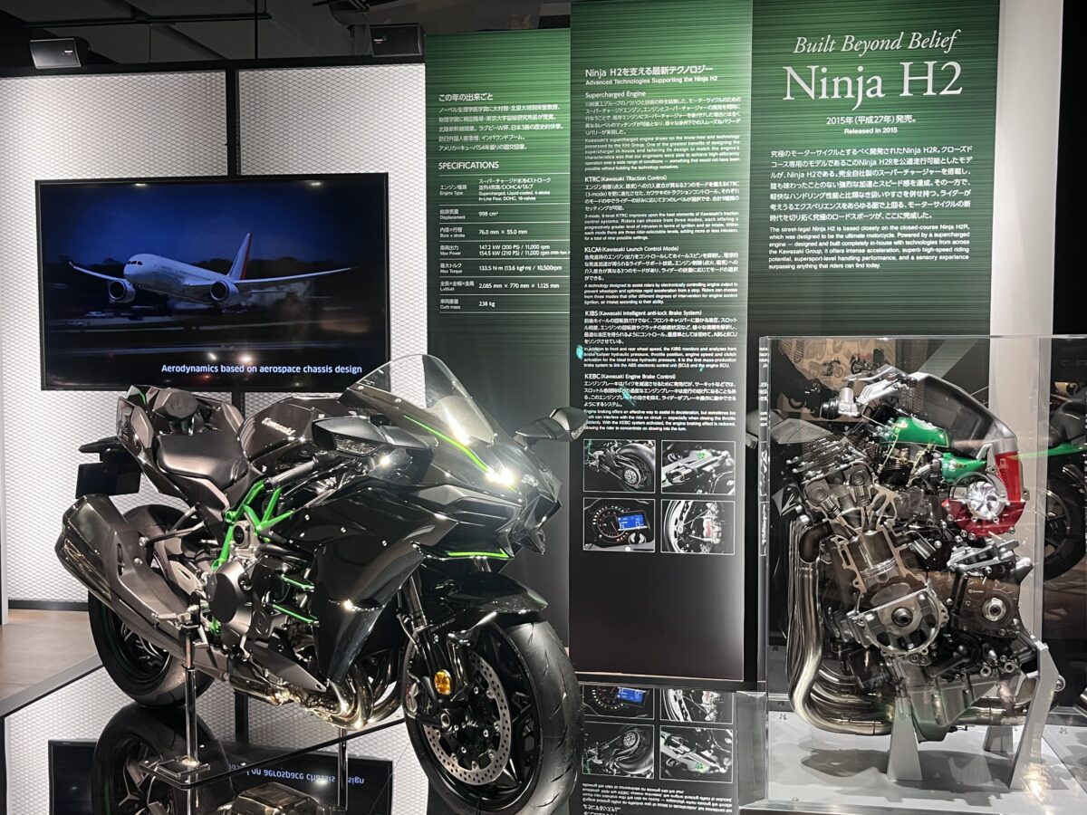 そのほかにもカワサキが誇る究極のロードスポーツバイク「H2」の新旧モデルや最新のレーシングマシンなども展示されている。