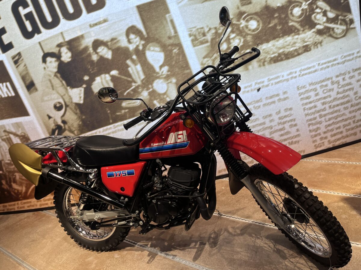 世界GPに参戦したA7RSやKR500など歴史的な活躍をしたレーシングマシンから、海外で人々の暮らしを支えたKV175などのファームバイクまで多彩な車両が並んでいる。