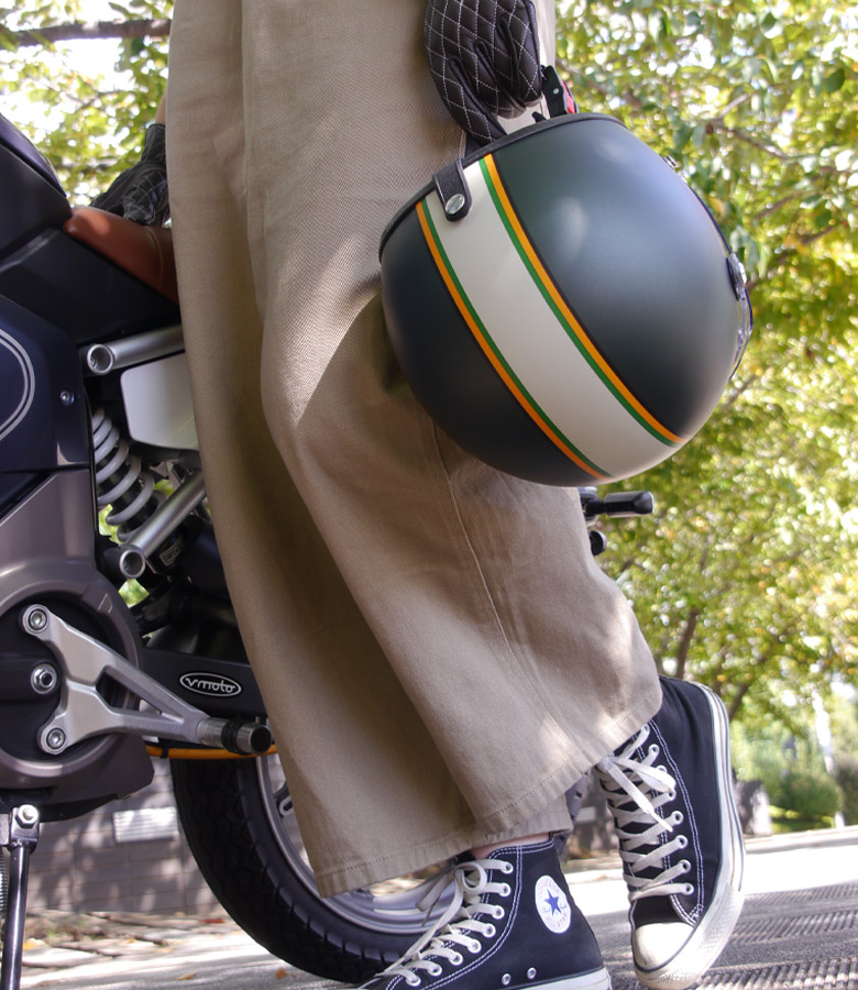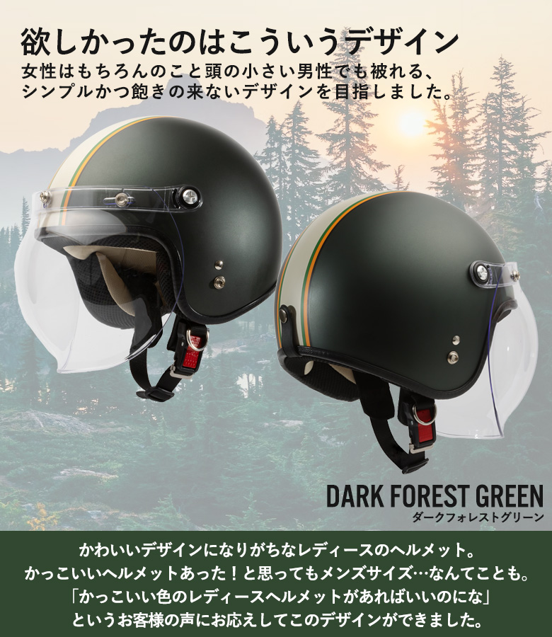男性でも被れる!シンプルなデザインのダークグリーンカラーのレディースジェットヘルメットが登場。
