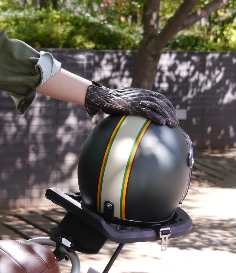 帽体カラーは人気のアースカラーやカーキグリーンの車体に合わせやすいセミマットのダークグリーンを採用。