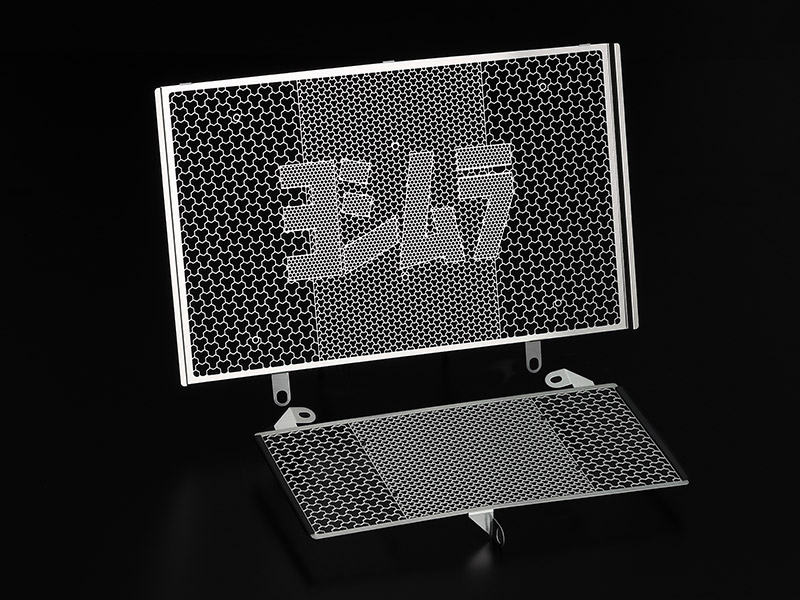 フロントタイヤから巻き上げた小石によるラジエターへのダメージや空中ダストがもたらすラジエターフィンの詰まりを最小限に抑えます。