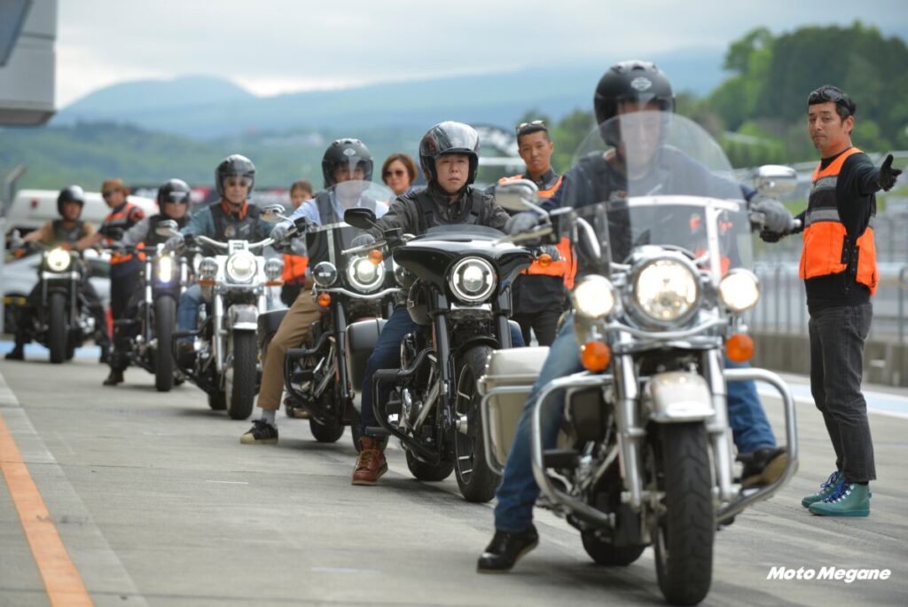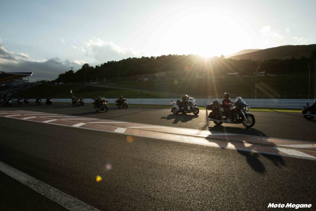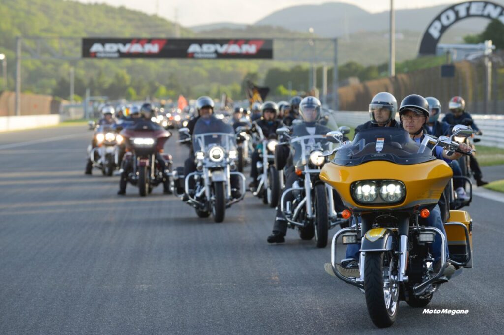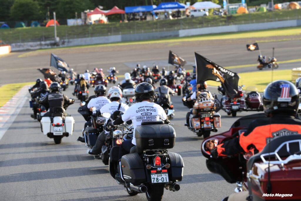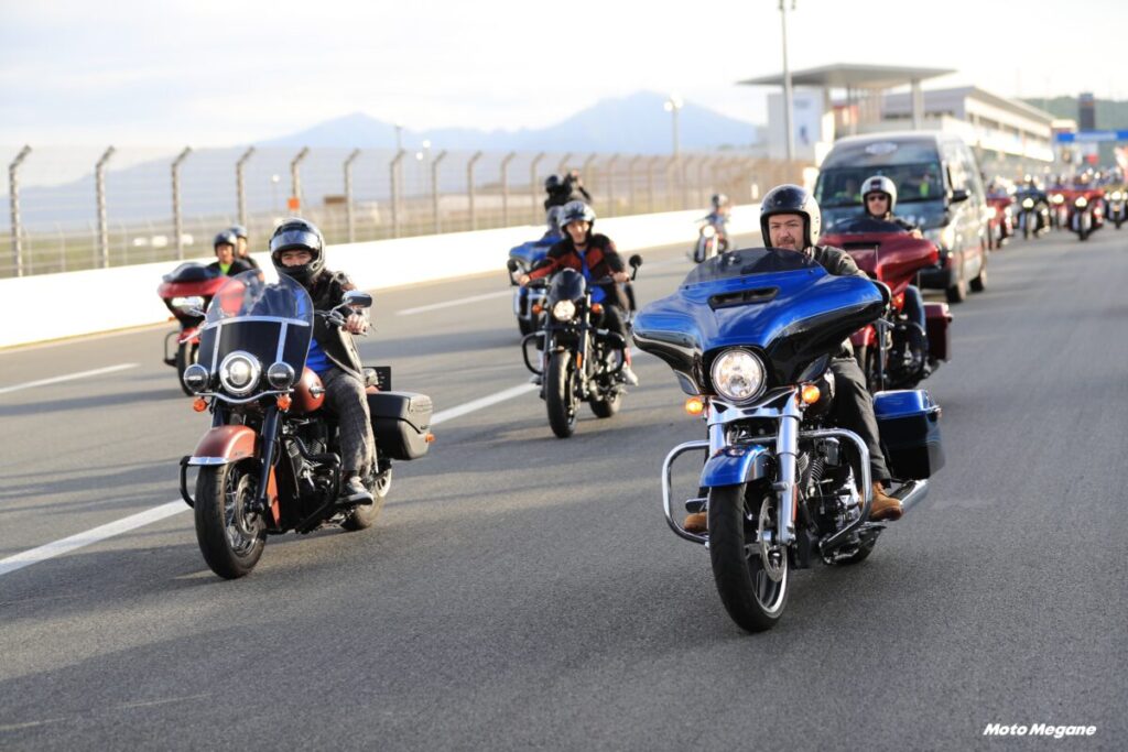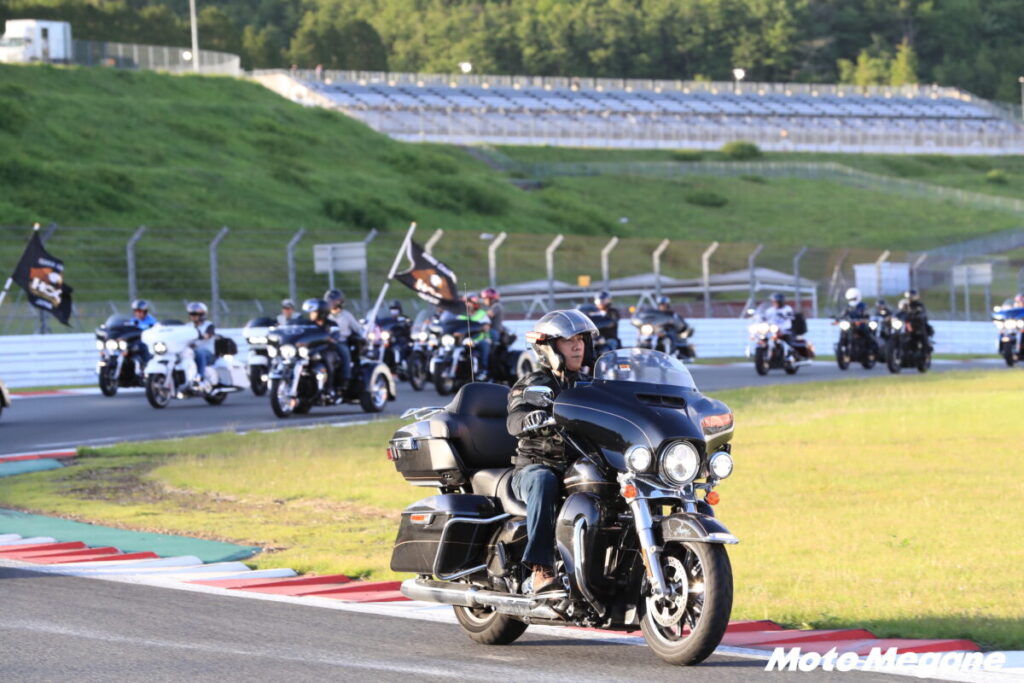 9月17日(土)の夕方に実施される約1000台のハーレーダビッドソンがコースを一斉に駆け抜けるハイライトプログラム『H.O.G. CHAPTER PARADE』は必見! どこまでも続くバイクの列はまさに圧巻だ。