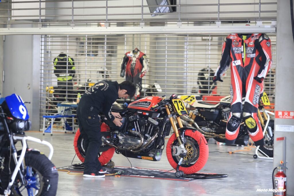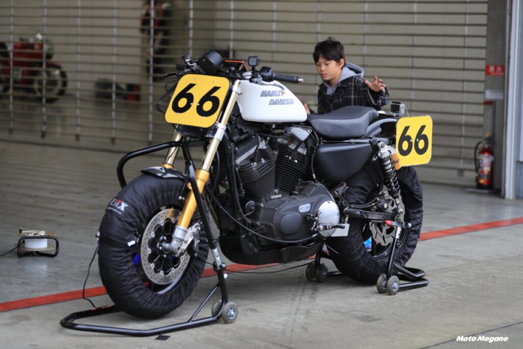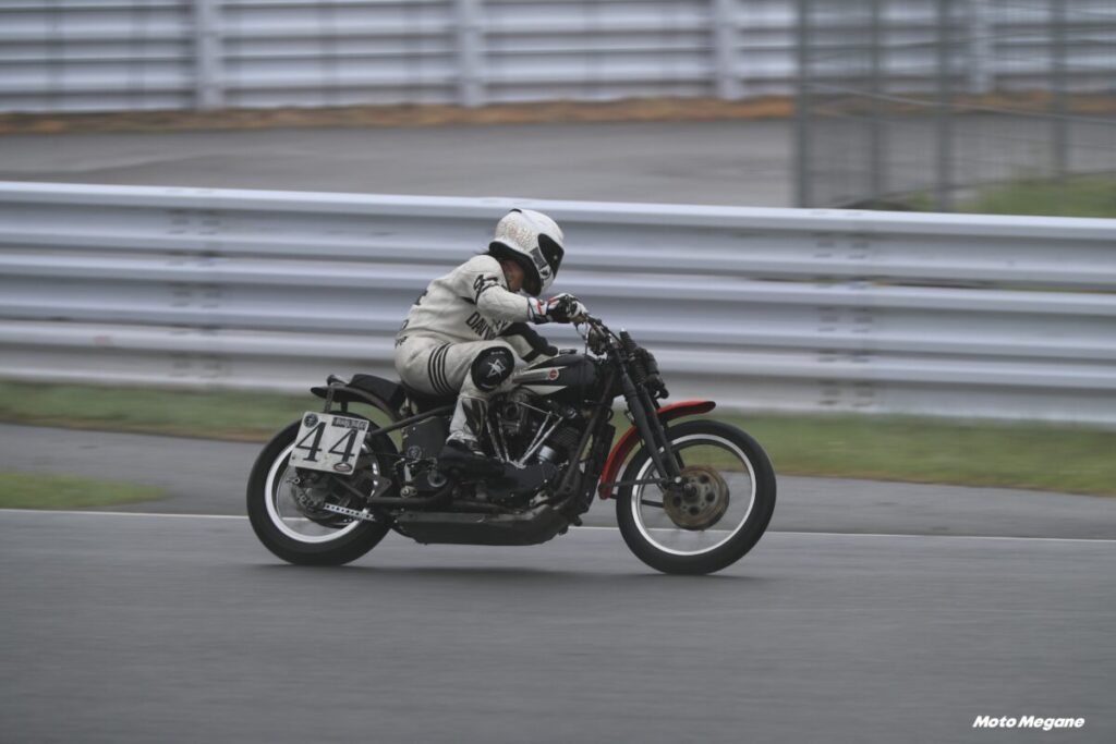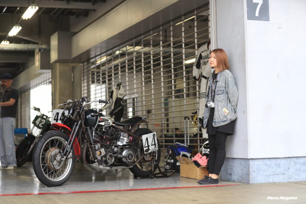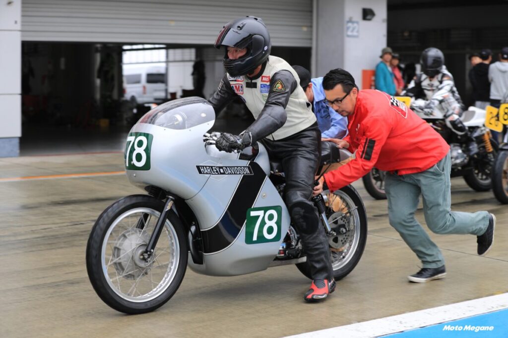 その60年代のモデルを中心としたデモ走行が行なわれ、ピットにもビンテージハーレーが展示される。