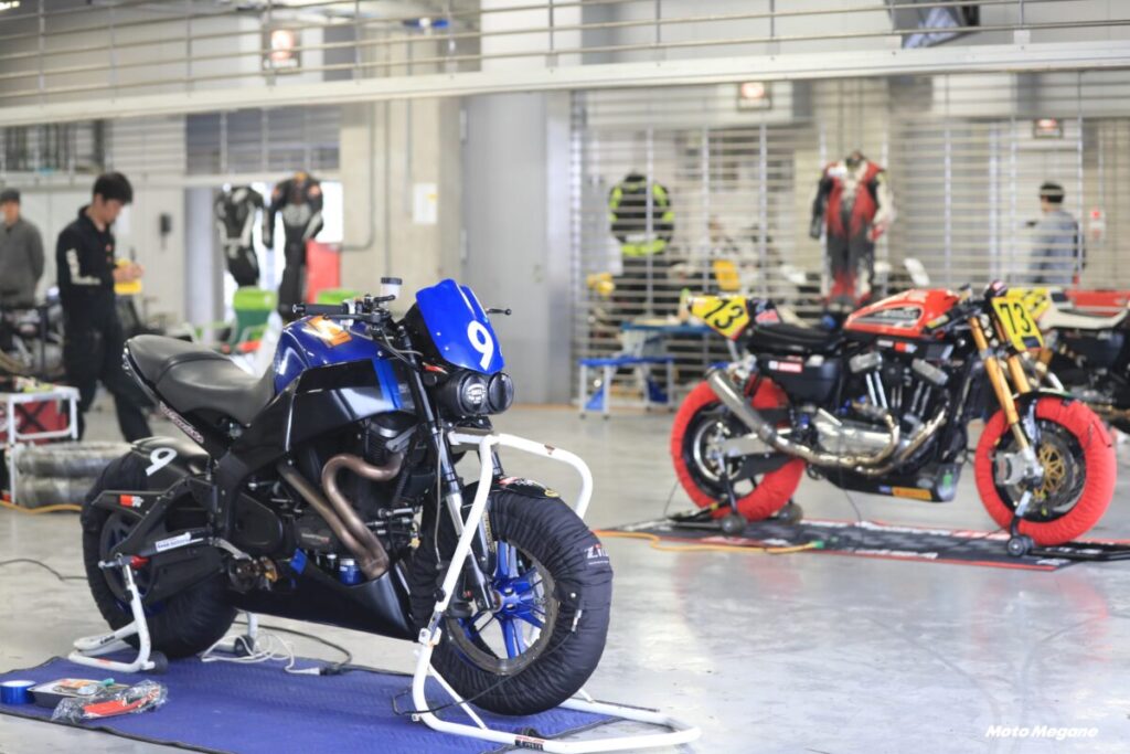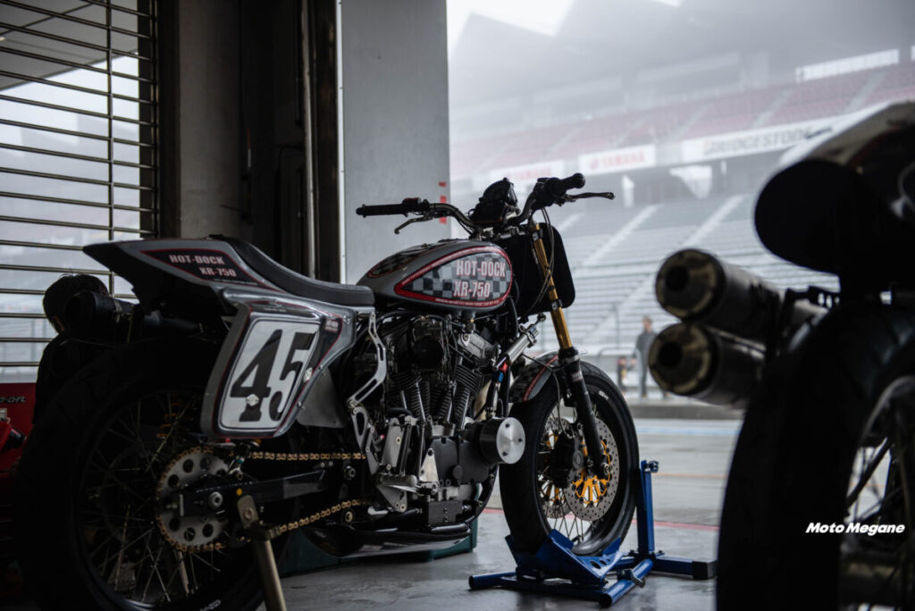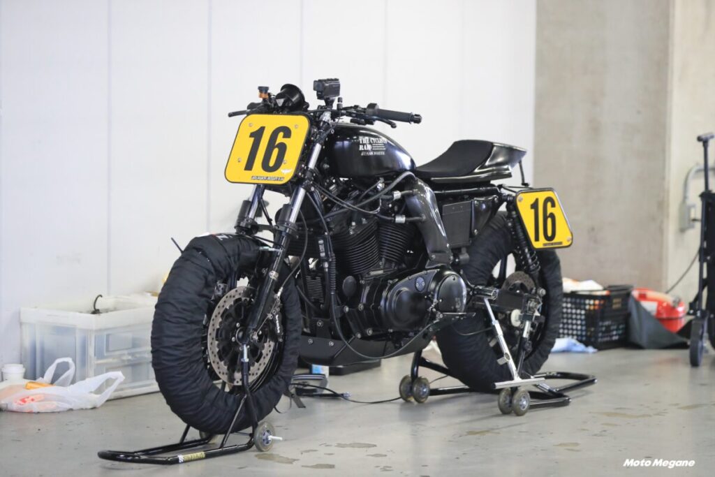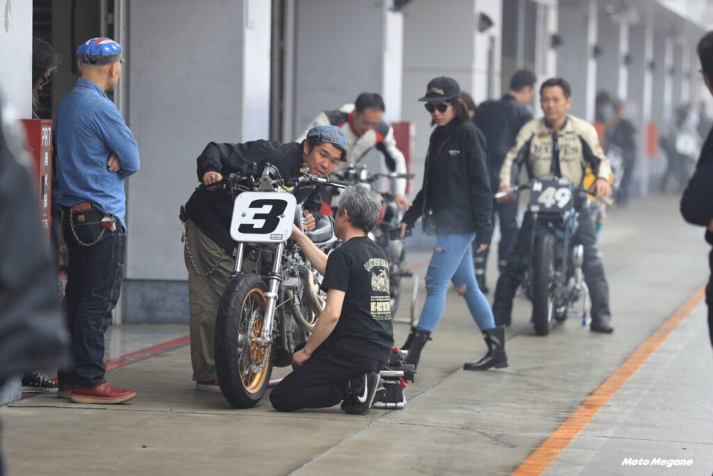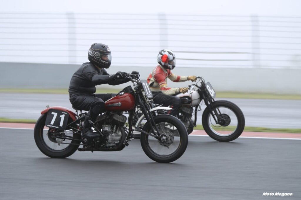 その60年代のモデルを中心としたデモ走行が行なわれ、ピットにもビンテージハーレーが展示される。