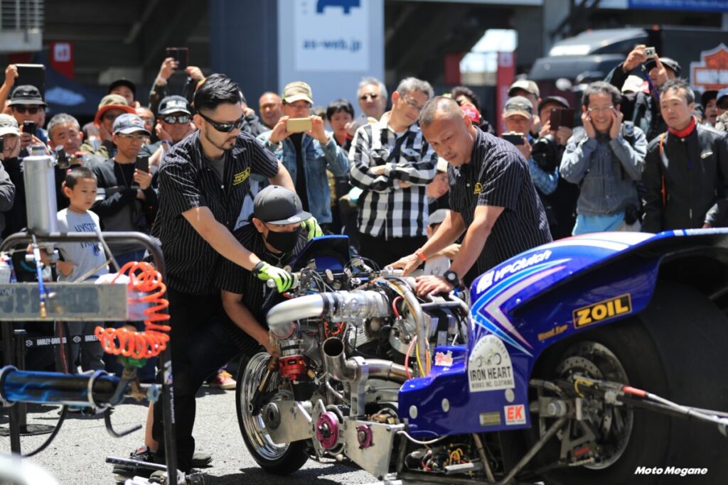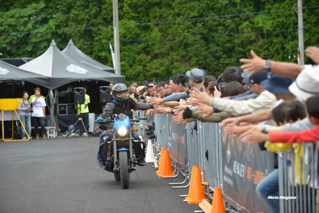 世界的プロライダーらによるスタントやデモランショーも見どころの一つ。低く長いハーレーダビッドソンを手足のように扱う走りは驚きの連続だ!