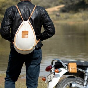 ヘルメットを運ぶ際も傷が付きづらい生成りのコットン素材を使用。スタイリッシュなデザインで耐久性にも優れています。