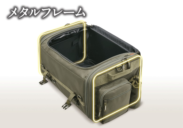 バッグ本体の3面にはパネルが、側面にはメタルフレームが内蔵しているため型崩れしを起こしにくく、荷物の出し入れがしやすいのが特徴だ。