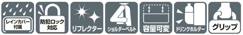 付属品 : 固定ベルト、ショルダーベルト、レインカバー