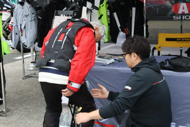 また、バイクのワイヤー取り付けサポートも実施し、初めてエアバッグジャケットを使用するライダーにも心強い。