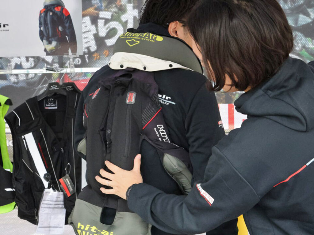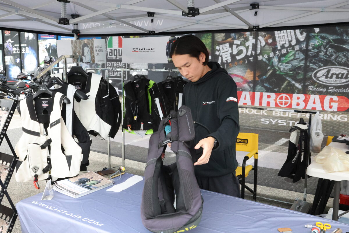 また、バイクのワイヤー取り付けサポートも実施し、初めてエアバッグジャケットを使用するライダーにも心強い。