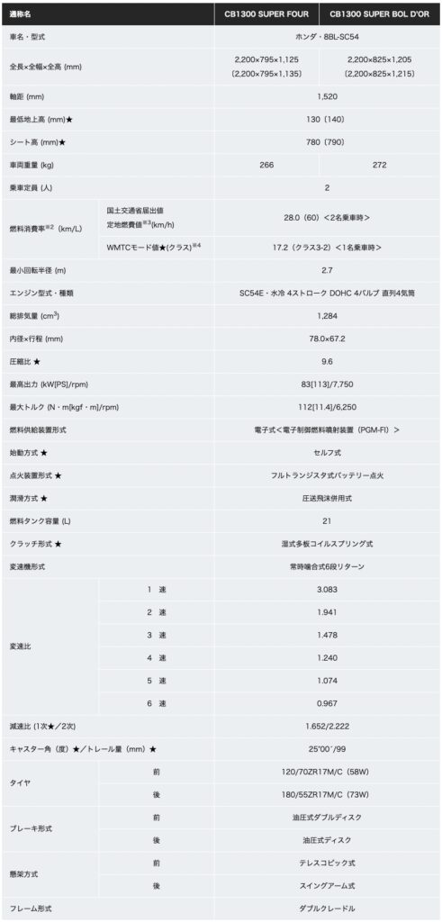 「CB1300 SUPER FOUR」「CB1300 SUPER BOL D’OR」ならびに 「CB1300 SUPER FOUR SP」「CB1300 SUPER BOL D’OR SP」の カラーリングを変更し発売