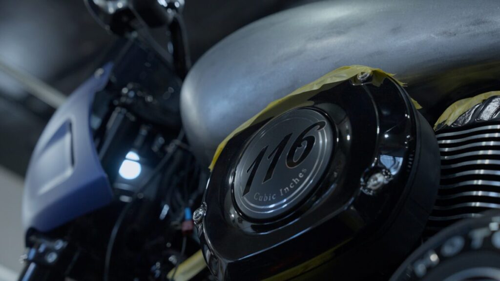 「そして、最も重要なのは、もちろん、フロントフェアリングです。クォーターフロントフェアリングは、まさにスポーツチーフのスピリットを象徴しています。従って、小松氏の独特のカスタムに対する姿勢、ディテールのこだわり、カラー、サーフェス、パフォーマンスパーツなど、スポーツチーフをベースに、カスタムシーンで定評のあるテクニックを駆使してボリュームアップすることが、成功の秘訣であり、私たちが求めていることなのです。」