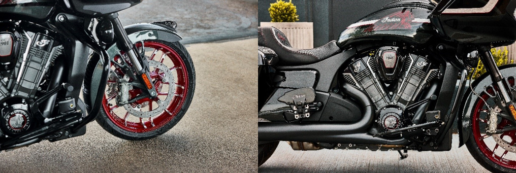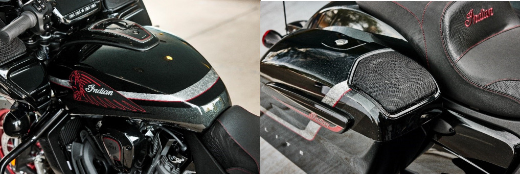 新しいペイントカラーだけでなく、Indian Motorcycle はバガーとツーリングモデルのフィットとフィニッシュを向上させ、モデルによってはダッシュバイザー、収納ドア、ダッシュトリム、ゲージベゼル全体に光沢のあるペイントフィニッシュが施されています。