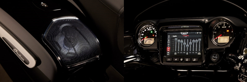 このクラスをリードするバガーは、Indian Motorcycle の全面的に再設計された新しい PowerBand オーディオシステムを標準装備しており4つの100ワットスピーカー(2つのフェアリングスピーカー、および2つのサドルバッグスピーカー)を備えています。さらに、新しいカスタムステッチのシートも標準で装備され、唯一無二のスタイルと一日中快適なライディングを提供します。