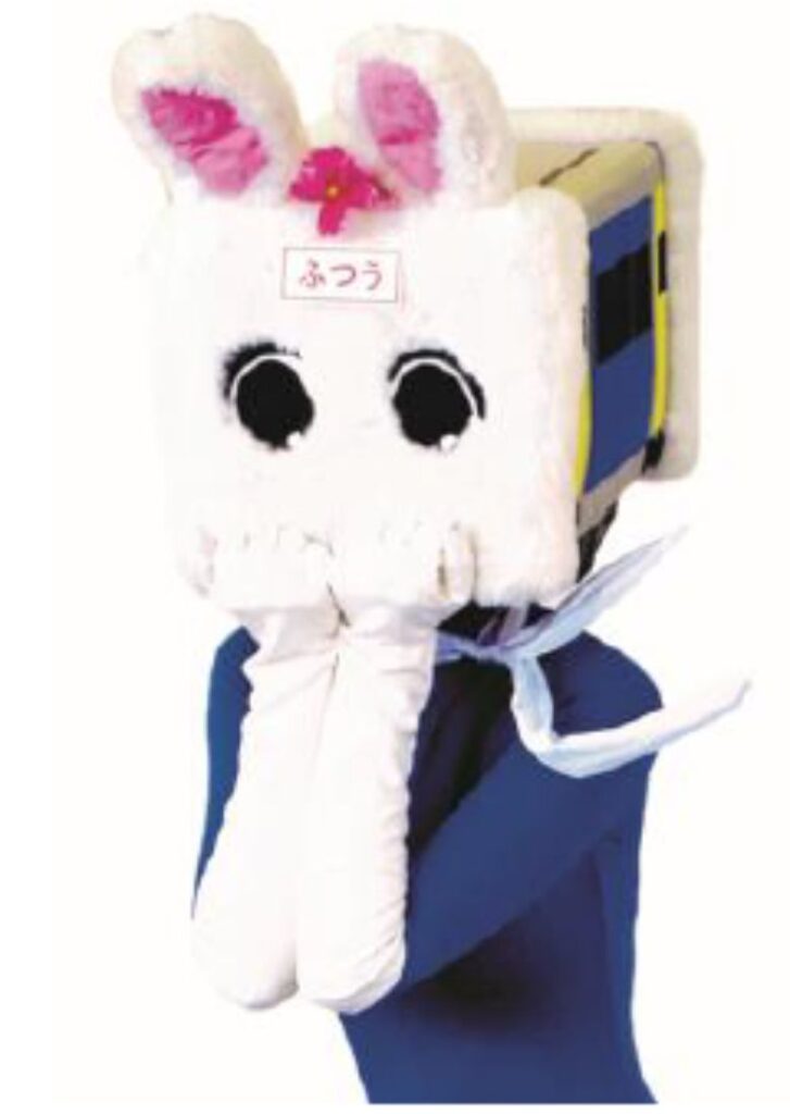 頭には兎の耳が付いたJR東日本キハE200形気動車の形をした被り物を装着し、それより下が全体が青いタイツで覆われた容姿を持つ。