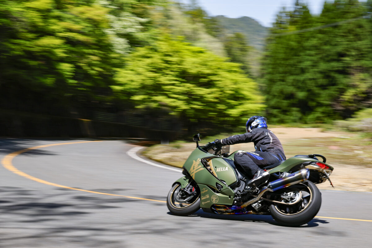 京都発のモーターサイクルパーツブランド「AELLA(アエラ)」がスズキのハヤブサ用のパーツを多数開発し、そのパーツをまとったバイクが完成しました。「京翠」と名付けたマットグリーンのアエラのハヤブサの魅力を引き出すために北川圭一さんにテストをオファーしました。