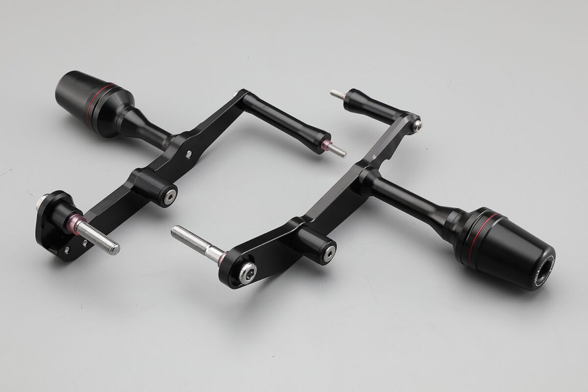 転倒によるダメージを軽減し、自走率を高めてくれる。張り出し感が少ないすっきりとした印象に仕上げているが、スライダーとしての機能を発揮する。2024年式で適合確認済み。