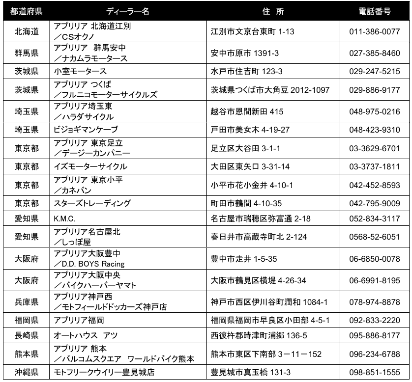 このキャンペーンでは、期間中にアプリリア正規販売店にて、新型RS 457の新車をご成約されたお客様に、純正アクセサリーとしてラインアップされている“コンフォート ローシート(標準比約20mmダウン)”と、スポーティな外観をさらに強調する“パッセンジャーシートカバー”をプレゼントしたします。なお、一部の販売店において、12月下旬より順次、新型RS 457の実車を先行展示しておりますので、ぜひこの機会に新しいアプリリアのライトウェイトスポーツの魅力をお確かめください。
