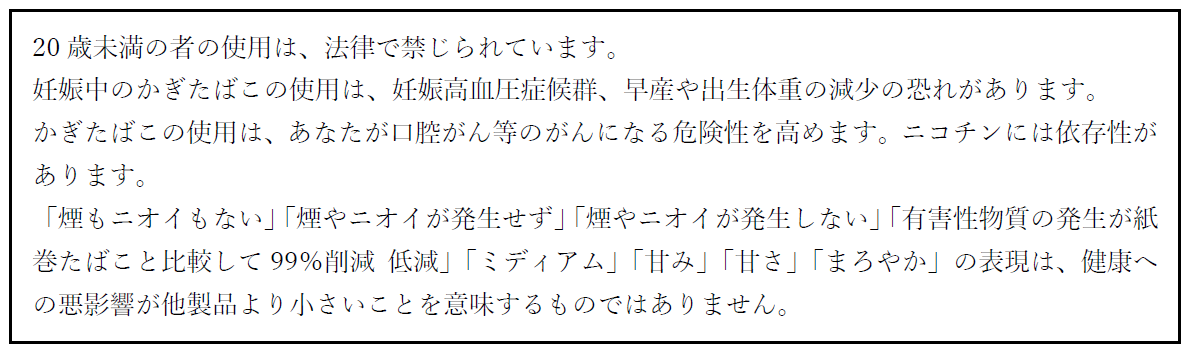 BATグループでは、たばこ製品のマーケティングを適切に実施するために国際的な自主規準を設定しています。そのため消費者に対するたばこ製品に関するすべてのコミュニケーションには、20歳未満の方へのコミュニケーションをお控えいただくとともに、「喫煙と健康に関する注意文言」を表示することを関係各位にお願いしております。オーラルたばこに関しては、記事掲載していただく際には、「健康に関する注意文言」が表示されるようご配慮いただきたく存じます。ご協力の程、何卒よろしくお願い申し上げます。