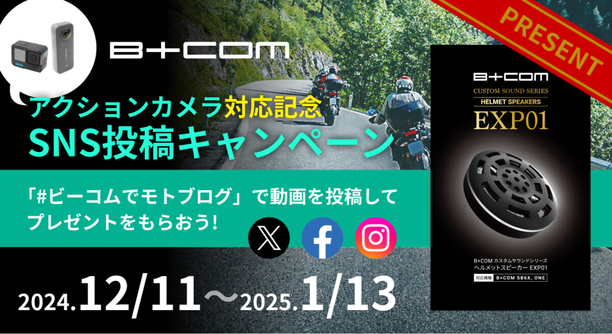 バイク用インカムB+COMシリーズを企画・製造・販売している株式会社サイン・ハウス(本社:神奈川県川崎市/代表取締役社長:新井 敬史)は、B+COMの特定モデル(B+COM SB6XR、B+COM SX1)ご購入者を対象に、「モトブログを楽しもう!キャンペーン」を実施します。期間は、2024年12月11日(水)~2025年1月13日(月)です。