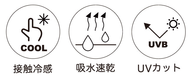 接触冷感機能により、肌に触れるとひんやりと感じる快適な着け心地。さらに吸汗速乾加工が施されており、汗によるべたつきを抑えて快適な着用感をキープします。
