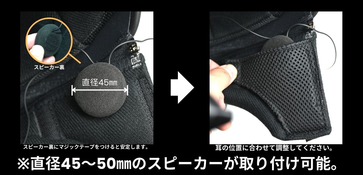 業界初、スピーカーホルダー付きイヤーカバーを開発し標準装備しました。