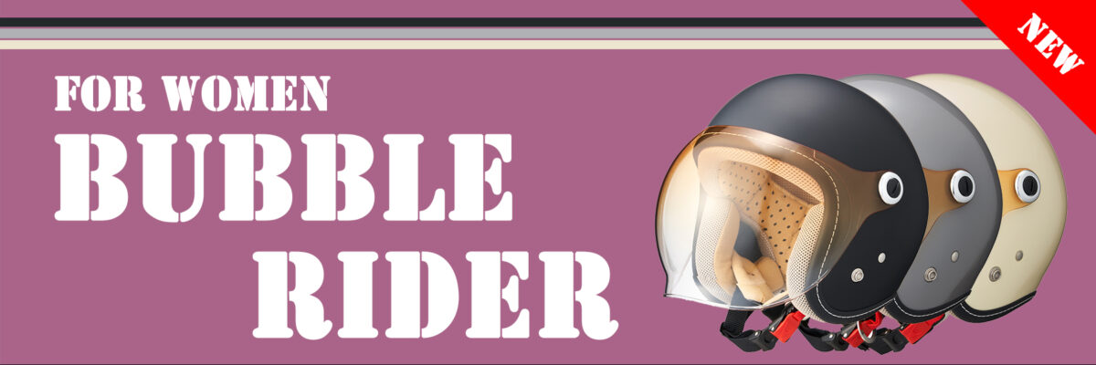 アンバーグラデーションバブルシールドが標準搭載された、シンプルなジェットヘルメット、『BUBBLE RIDER WOMEN』。